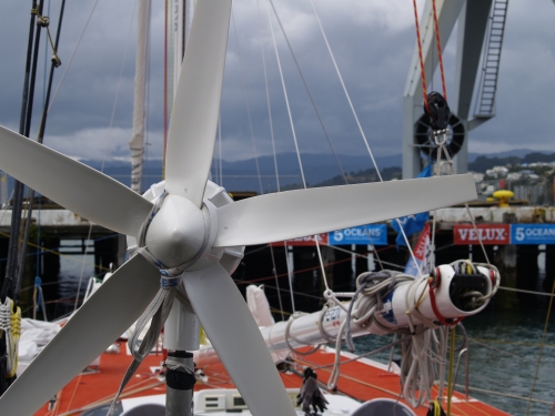 Na tyle na ile go oglądałam to blokadą jest taśma. Wczoraj po zdjęciu wiatraczka okazało się że mógł być przyczyną zwarcia. Wiadomo też dlaczego przestał dawać prąd, co nie miało znaczenia bo działał hydro. Kabelek w środku był źle podłączony i się trochę stopił (!). Po raz kolejny okazało się że gość który przygotowywał jacht w Kapsztadzie jest „sprawny inaczej” (Francuz, a jakże). Tu już go nie ma, a Gutek razem z Maćkiem i Michałem sprawdzają wszystko od góry do dołu.