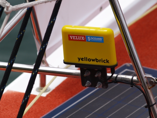 Tutaj urządzenie „Yellowbrick” – ono umożliwia śledzenie łódki. Sygnał z yellowbricka jest przekazywany przez satelitę i dzięki temu na przykład możemy oglądać mapę – czyli nasz ulubiony Raceviewer.