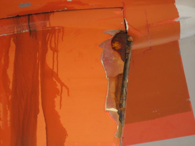 Uszkodzenia obejmują delminację górnej części kila (efekt spotkania z drzewem) – to praca na 2 dni, którą będziemy wykonywać siłami własnymi i wolontariuszy (dwóch zawodników z klasy Laser).