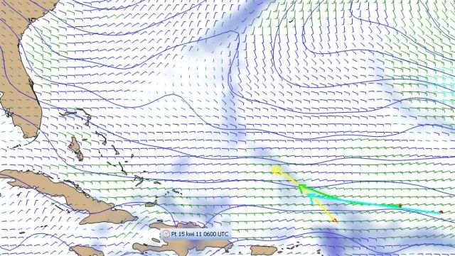 Do południa ta smuga powinna przelecieć przez Chrisa i Dereka i powinni mieć w miarę wyrównane warunki. U Brada wiatr poprawi się dopiero od północy, tak więc spodziewam się, że para pościgowa nieco nadgoni. Potem Bradowi otworzy się ścieżka z grubsza pokrywająca się z obecnym kursem, która powinna umożliwić mu wyjście przed pozostałą parę.