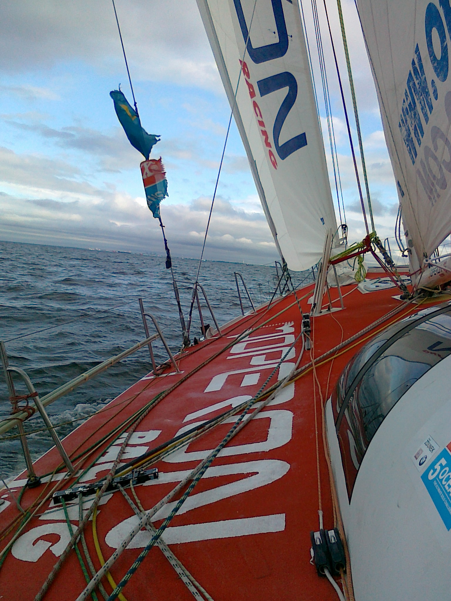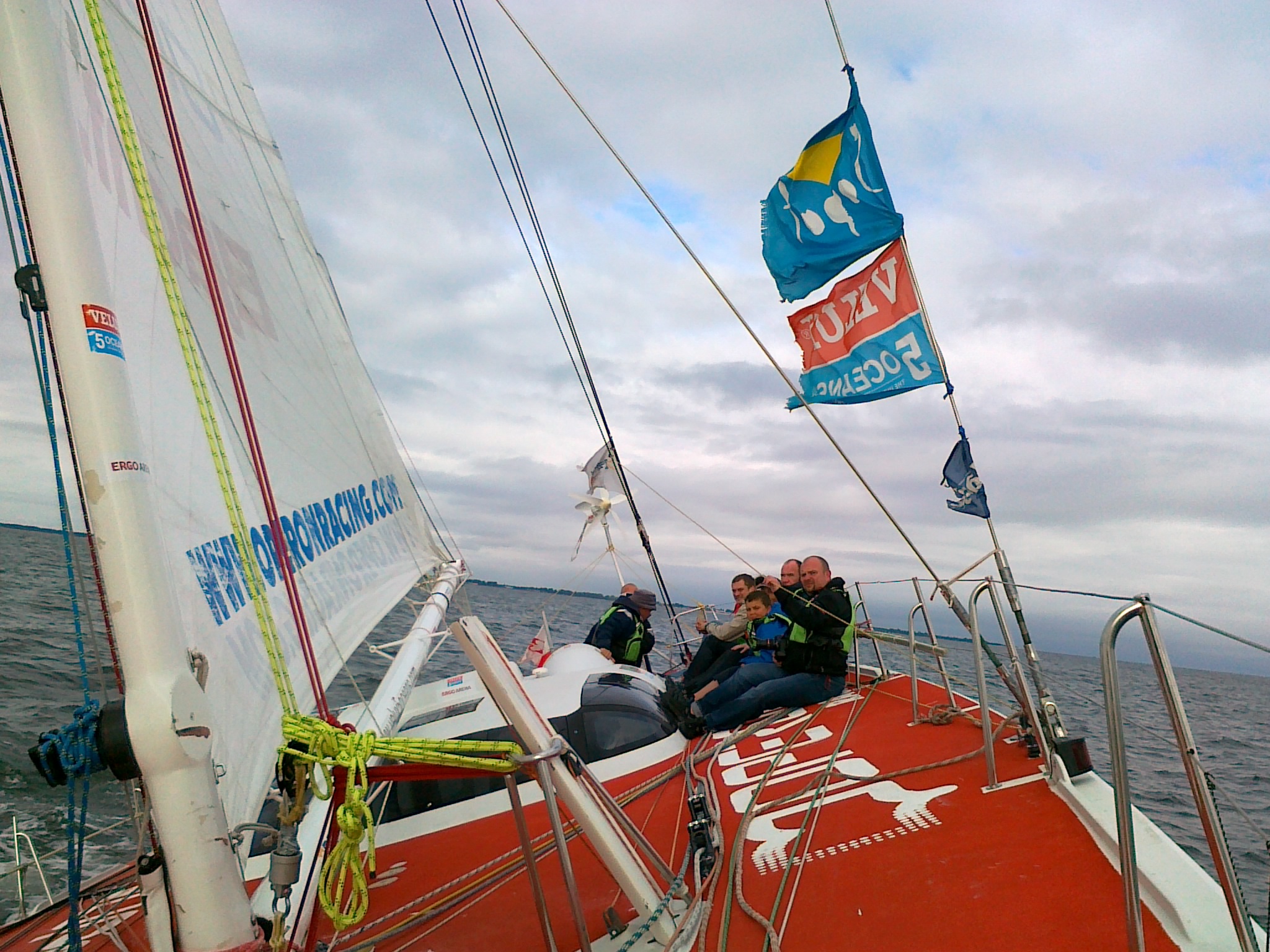 Wiatr coraz mocniejszy, stan morza 4. Ochotnicy mogą stanąć za kołem sterowym. W kokpicie ciekawa rozmowa, wspomnienia z V5O, problemy polskiego żeglarstwa, Vendee Globe 2012… !