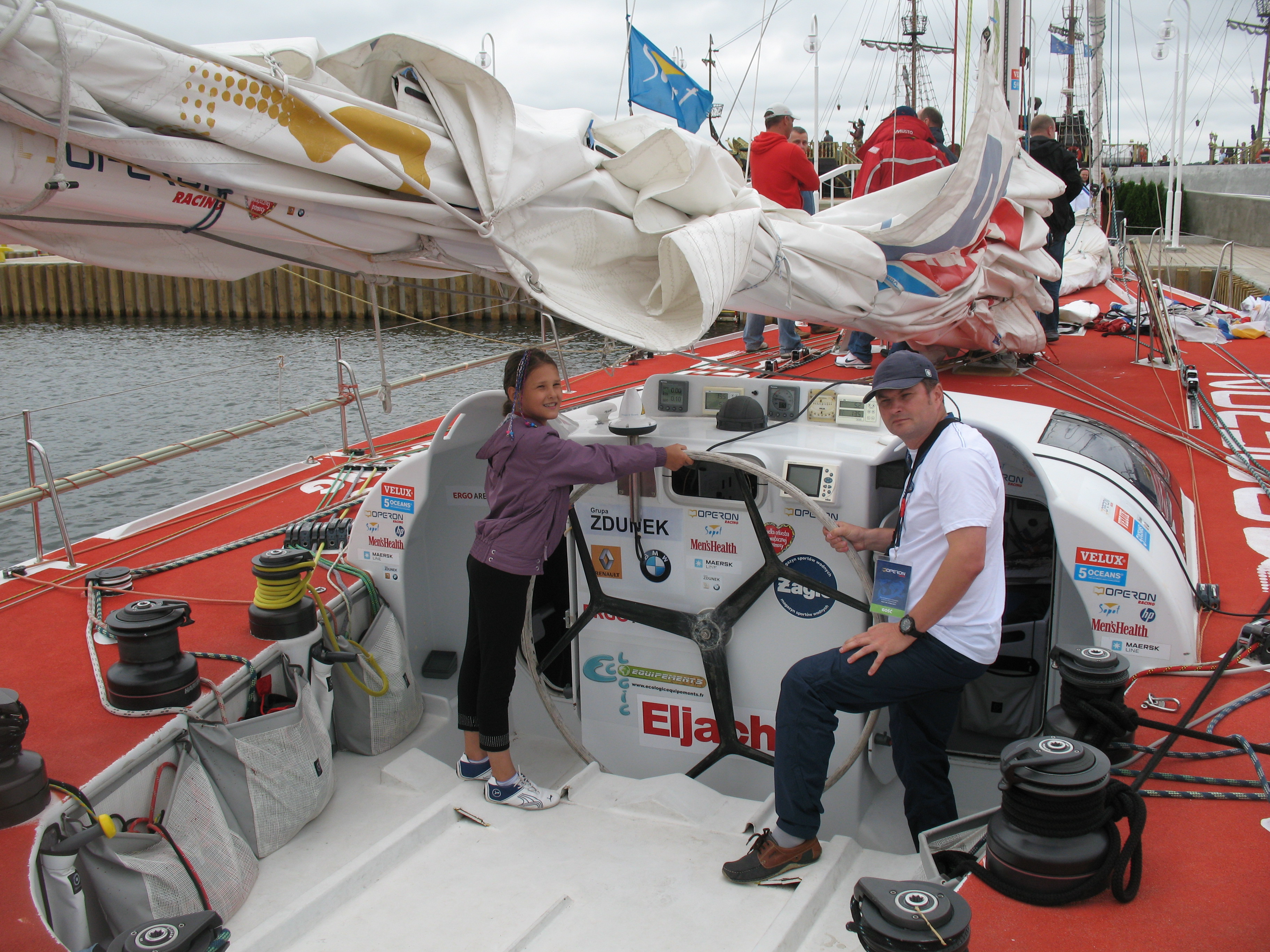 Gutek przez osiem miesięcy stawiał żagle sam, po zakończeniu regat okazało się, że schudł 15 kg. Po postawieniu grota, szybko rozwijamy solent.