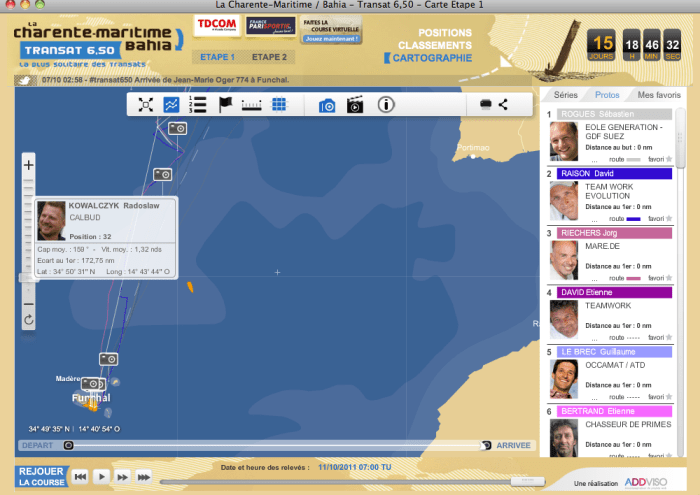 Obecnie jednak wiatr osłabł i Kowalczyk, znajdujący się dziś o godzinie 12.00 czasu polskiego na południowy wschód od portu docelowego Funchal, na pozycji 34°50.31 N / 14°43.44 W, płynie powoli.