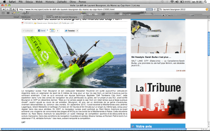 P.S. Yvan Bourgnon ma też utalentowanego żeglarsko brata, Laurenta, który po błyskotliwej karierze na wielokadłubowcach i nie tylko zakupił w polskiej (!) stoczni Sun Reef turystyczny katamaran, którym wraz z rodziną wyruszył w roku …. w rejs dookoła świata w ramach zadośćuczynienia za lata nieobecności w domu … (więcej np. tu: http://www.sunreef-yachts.com/pl/aktualnosc,139,Katamaran-motorowy-JAMBO-bije-rekordy-niskiego-zuzycia-paliwa.html). Aha, jest jeszcze zadanie – zagadka: czy ktoś może wyjaśnić, dlaczego Yvan jest Szwajcarem, a Laurent Francuzem?