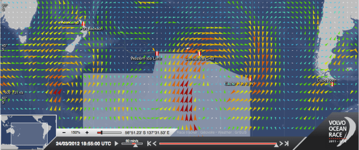 Widać NZ, Horn, granicę bezpieczeństwa oraz pozycje. / http://www.volvooceanrace.com