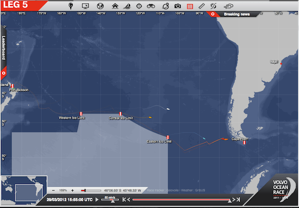 Póki co bez awarii – ale za to z urazami wśród załogi – płyną Puma i Groupama. Wygląda na to, że tylko oni w najbliższy weekend miną Horn. Tylko jeden etap przez Ocean Południowy ale za to cztery awarie, co może być źródłem sporego stresu dla organizatorów. Nie wiem, jak w takiej sytuacji będzie wyglądał kolejny etap – wystartują dwa jachty, a reszta popłynie statkiem dalej? No zobaczymy. Ale zdjęcia i filmy z pokładów – pierwsza klasa. Więc coś za coś, niestety.