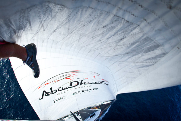 Widok z masztu - niezależnie od porcji żywnościowych, robota musi być zrobiona. / Fot. Nick Dana/Abu Dhabi Ocean Racing/Volvo Ocean Race