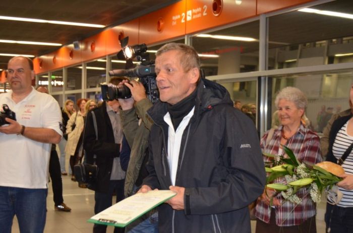 W wyniku całkowicie spontanicznej akcji miałam dziś okazję brać udział w powitaniu kapitana Cichockiego, który po zakończeniu rejsu dookoła świata w Breście (szczegóły są tu: http://www.kapitancichocki.pl/ ) przyleciał na kilka dni do Polski. Oprócz rodziny i znajomych były kamery, wywiady i kibice. Oraz arbuz w prezencie. Kapitan opowiadał rzeczy niesamowite, ale najbardziej cieszy go jednak ten certyfikat WSSRC. Ogromny szacunek dla człowieka, który zrobił to, co zrobił, nie poddał się po wywrotce jachtu i dopłynął do mety. Musiał wybierać taką trasę, żeby dało się płynąć na tych żaglach, które mu zostały, wykombinować jak spać nie posiadając samosteru ani autopilota i rozwiązać masę innych problemów… Chapeaux bas.