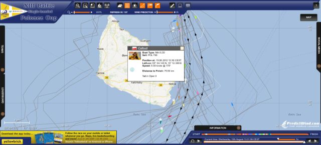 Strona regat jest tu: http://www.portalzeglarski.com/polonezcup_regaty_poloneza.html, na miejscu od razu tracking za pomocą urządzeń Yellowbrick (super pomysł i bardzo fajnie działa), bezpośredni link do trackera http://yb.tl/polonez2012. Pierwszy jacht ma jeszcze 64 Mm do mety (Delphia 40 ELJACHT, Jerzy Jankowski). Dużo pięknych zdjęć autorstwa Marka Wilczka (pozdrawiamy) na stronie regat oraz na Fb.