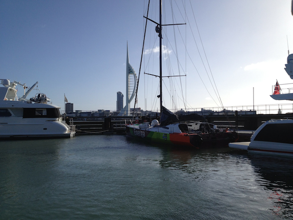 Jak się zapewne szanowni czytelnicy już zorientowali ze strony Polish Ocean Racing, pogoda uniemożliwia na razie wyjście z portu. Chociaż teoretycznie świeci słońce (jak widać na dzisiejszym zdjęciu Świstaka z Gosport) – na morzu sytuacja wygląda, ogólnie rzecz biorąc, niewyjściowo. Gutek zdecydował się oszczędzać sprzęt i przeczekać najgorsze. No bo stać pod wiatr powyżej 40 węzłów na środku Kanału bez szans na płynięcie do przodu – bez sensu, a ryzyko uszkodzenia sprzętu rośnie wraz z siłą sztormu.