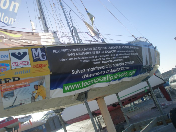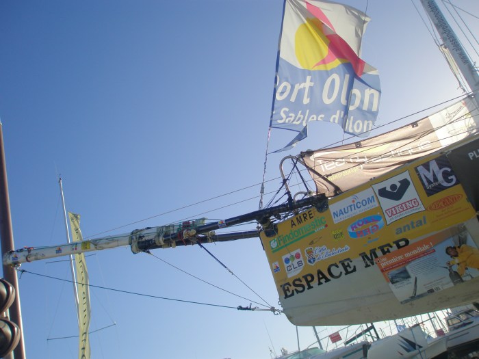 W porcie w Les Sables d’Olonne dzieje się sporo, po bieżące informacje oraz codziennie nowe galerie zdjęć naszego zespołowego fotografa Roberta Hajduka zapraszam na stronę http://www.energasailing.pl. Strona Polish Ocean Racing chwilowo w przebudowie, ale już w tym tygodniu będzie premiera nowej szaty graficznej, więc od razu zapraszam również i tam. Jak można się domyślać, chwilowo na pisanie tutaj mam czas raczej ograniczony, ale nie mogłam się powstrzymać. Po drodze do portu codziennie mijam jacht. Właściwie jachcik, łódeczkę, Mini.