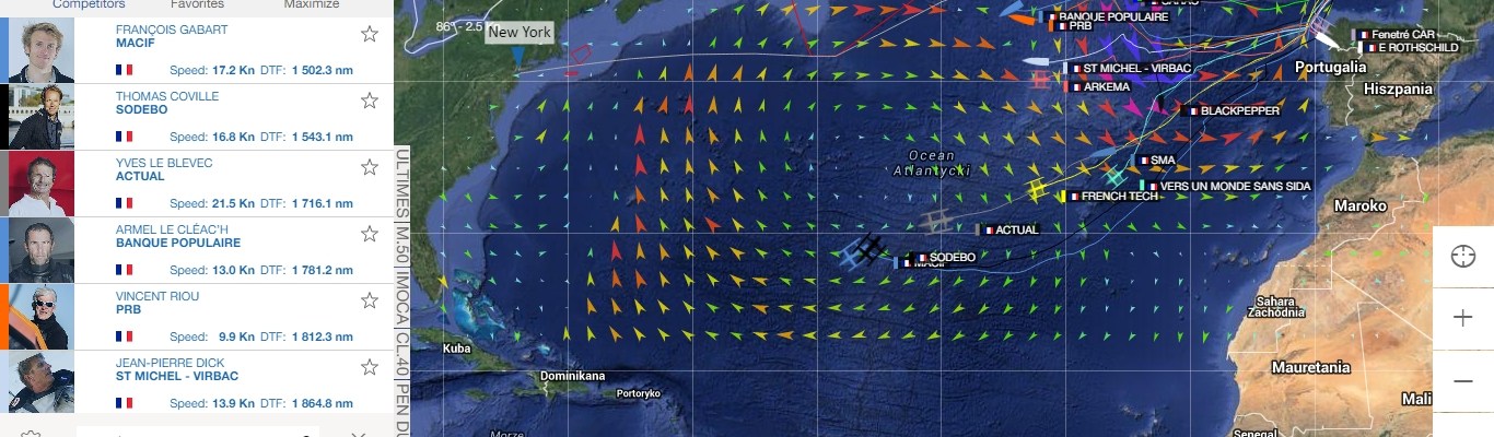 Trimarany Ultime płyną do Nowego Jorku prawie przez Bermudy, ale za to w dobrych warunkach (ciepło, stabilny wiatr i brak wysokiej fali) i bez kłopotów. Zarówno Francois Gabart (Macif) jak i Thomas Coville (Sodebo) bardzo się pilnują, a przez to ciężko pracują fizycznie – obaj mają do wykonania serię zwrotów przez rufę, z których każdy zajmuje godzinę, z czego 20 minut to ostra praca na kabestanach.